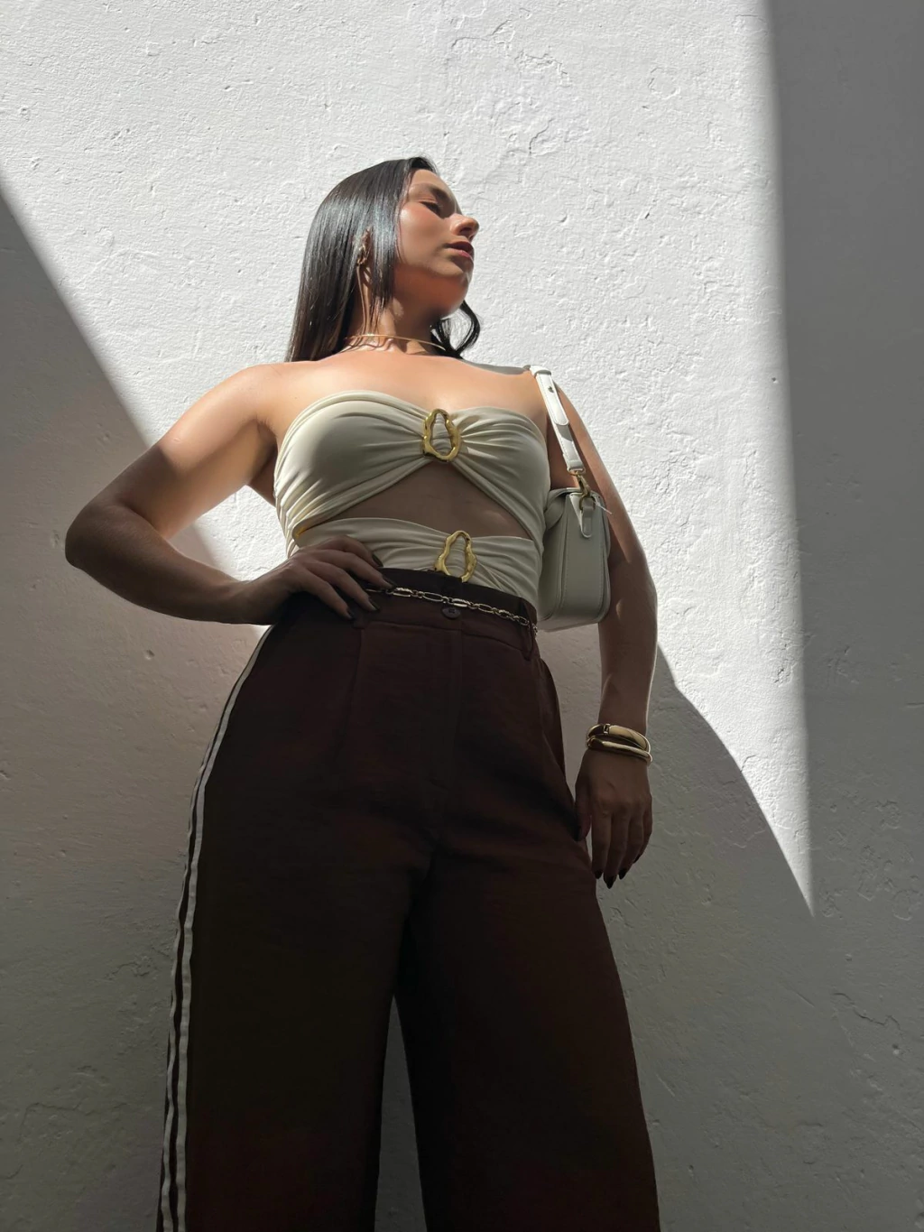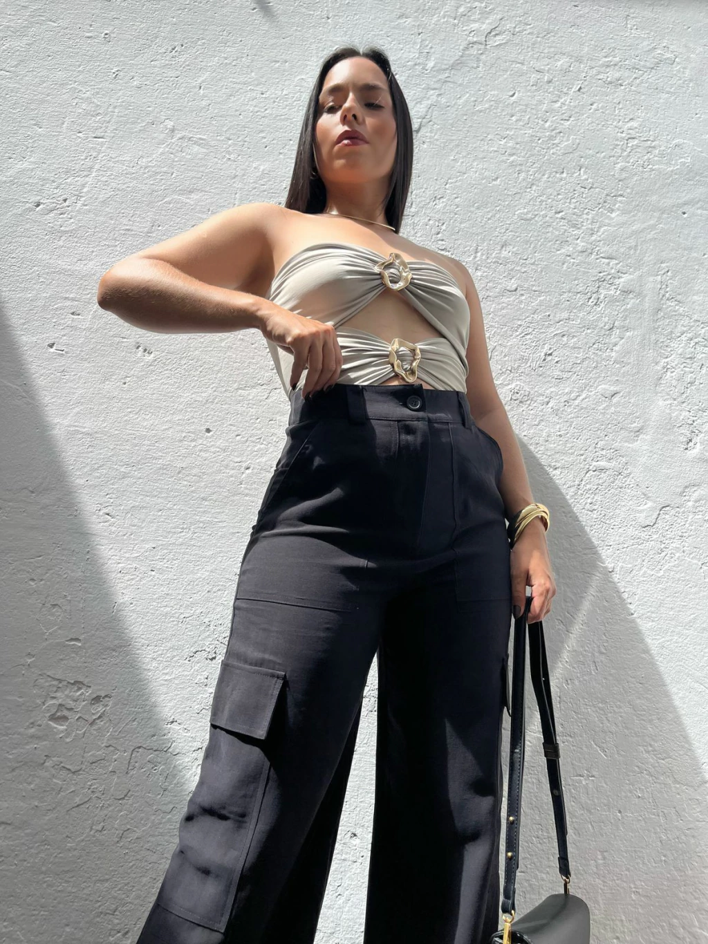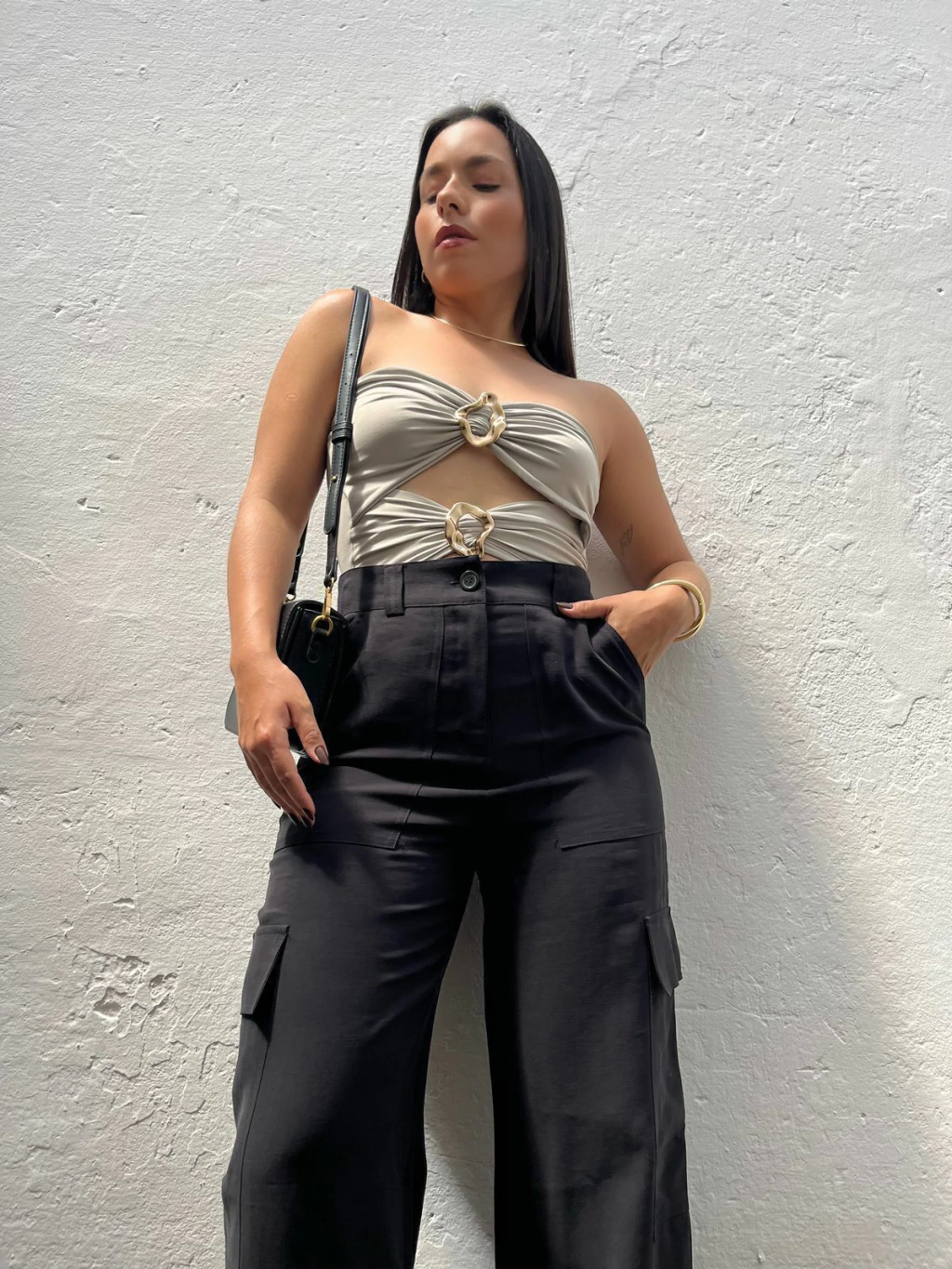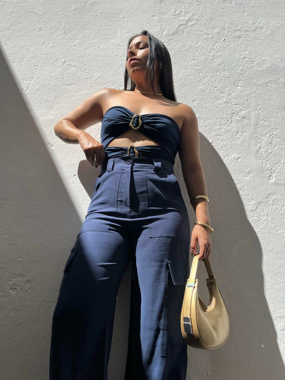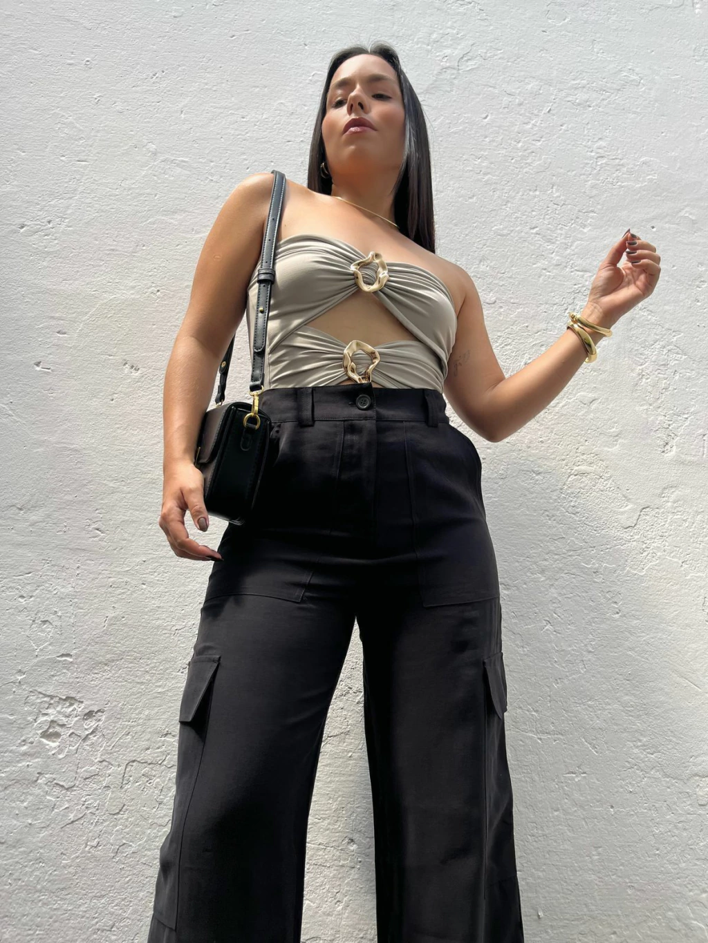 Body em poliamida, modelo tomara que caia. Possui decote mais aberto, recortes na cintura e fivelas métalicas no dourado. Não possui fecho embaixo. Modelagem ajustada ao corpo. Tecido duplo, não marca e não fica transparente.