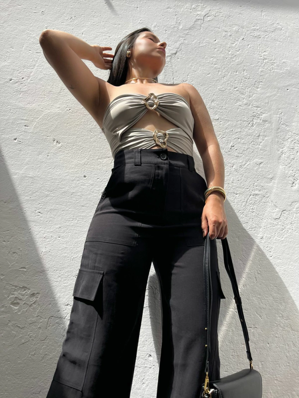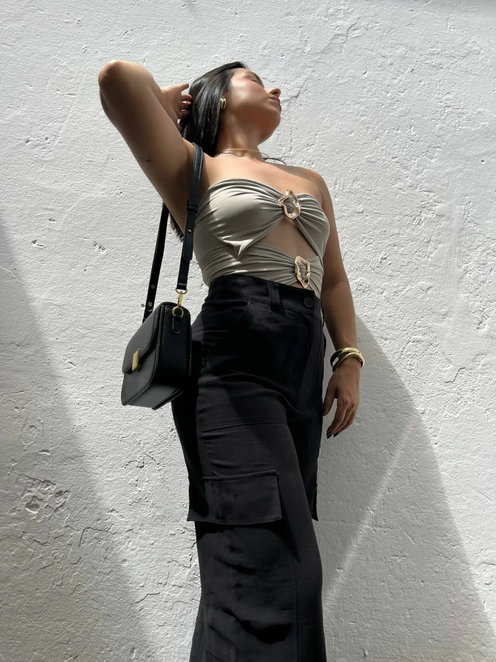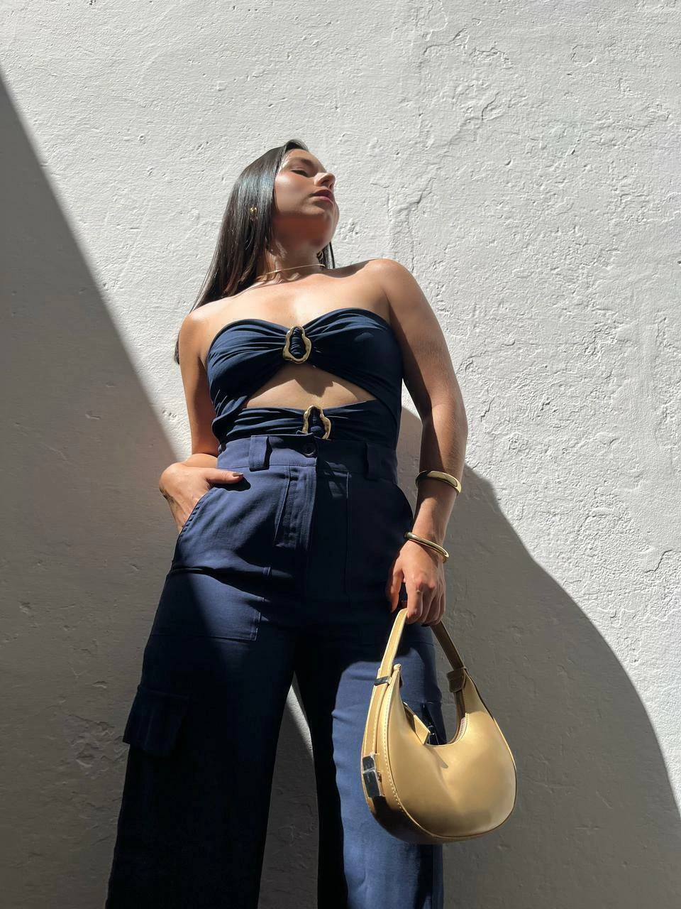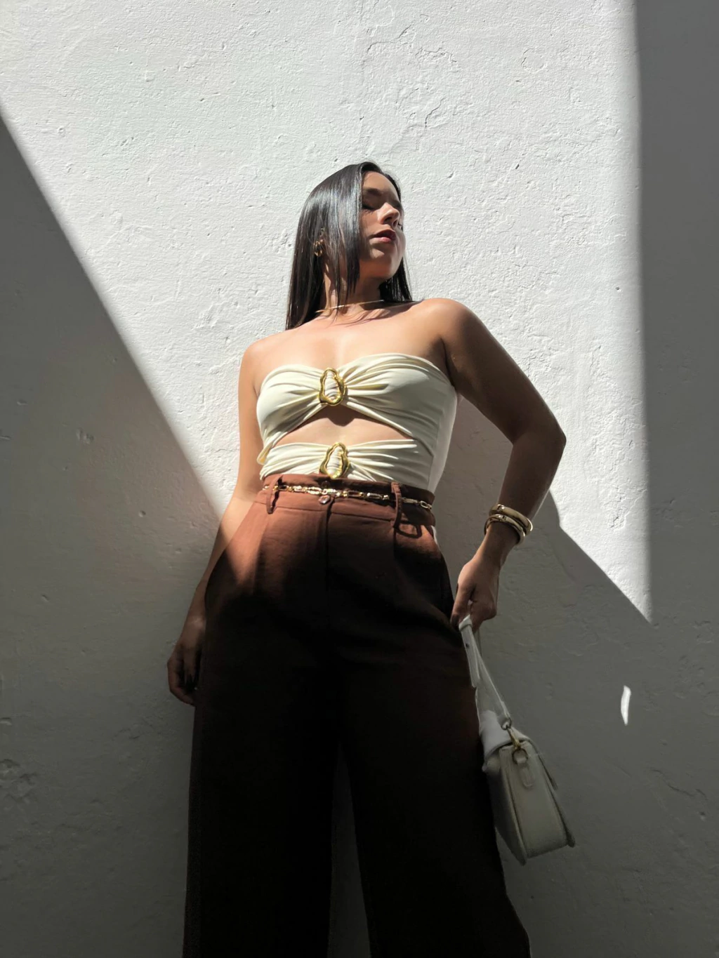 Body em poliamida, modelo tomara que caia. Possui decote mais aberto, recortes na cintura e fivelas métalicas no dourado. Não possui fecho embaixo. Modelagem ajustada ao corpo. Tecido duplo, não marca e não fica transparente.