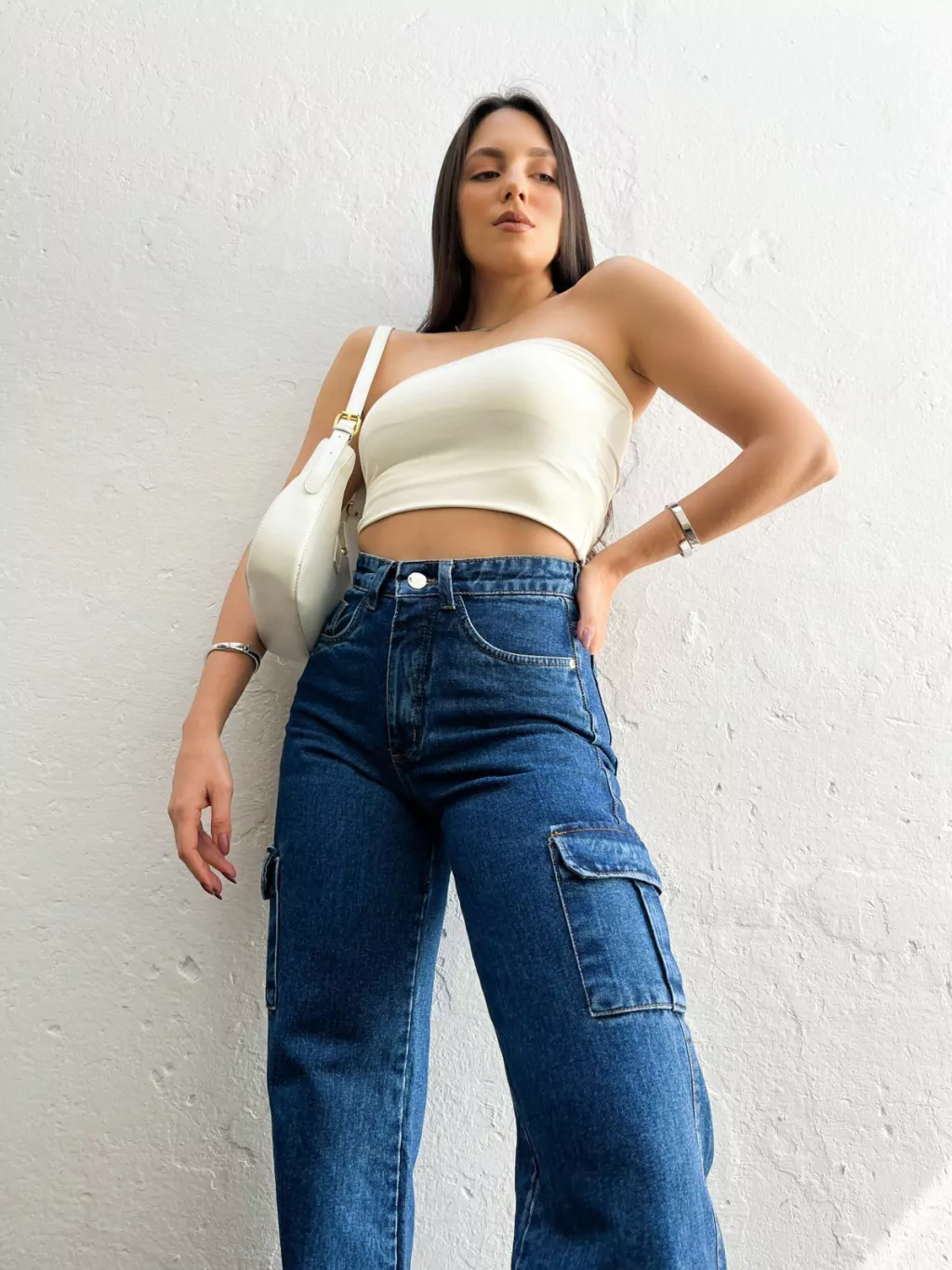 Cropped em poliamida, modelo tomara que caia. Possui forro duplo no decote. Possui caimento ajustado ao corpo. Possui elástico em volta do busto e costas para melhor caimento. Não marca e não fica transparente.