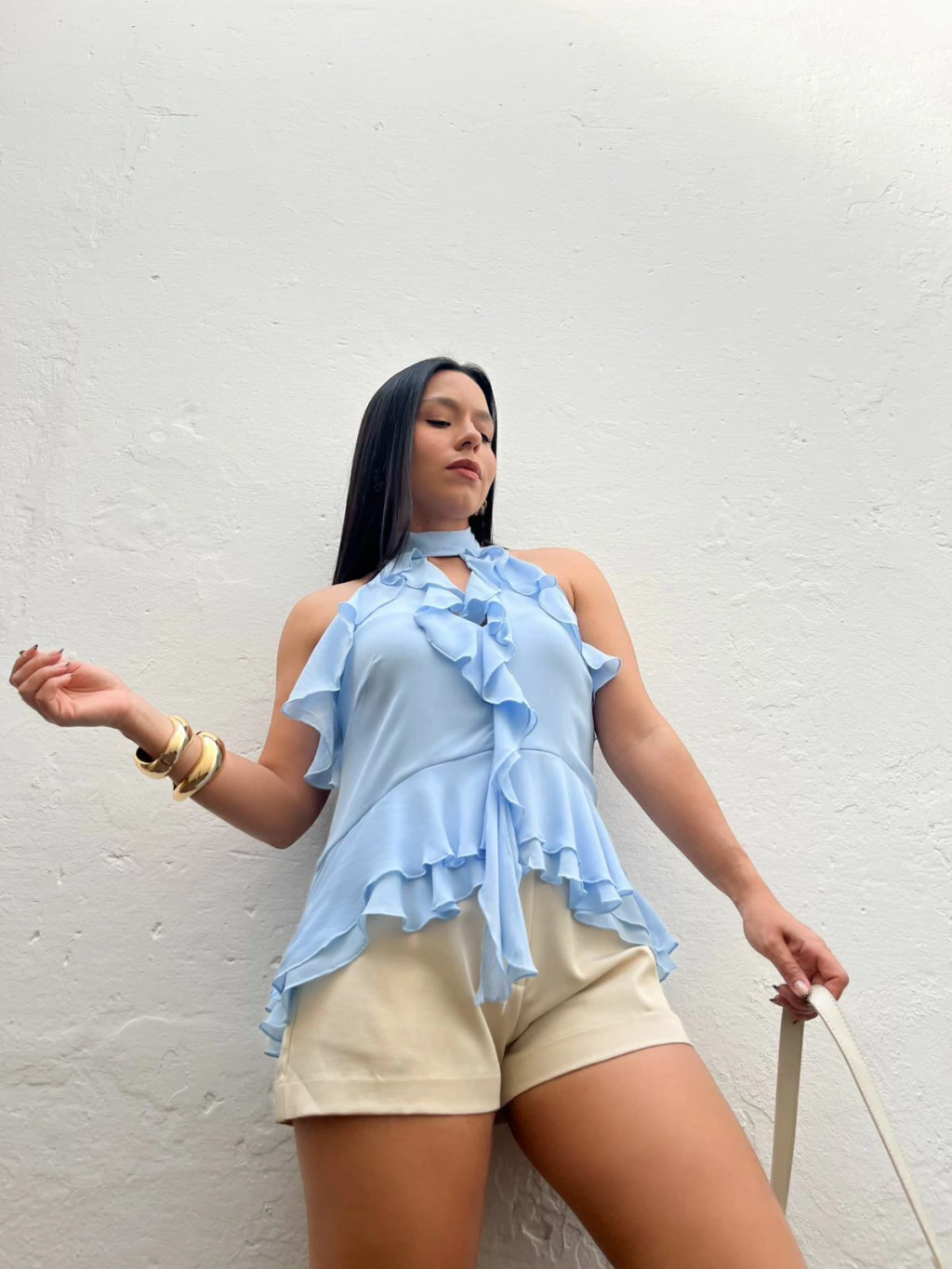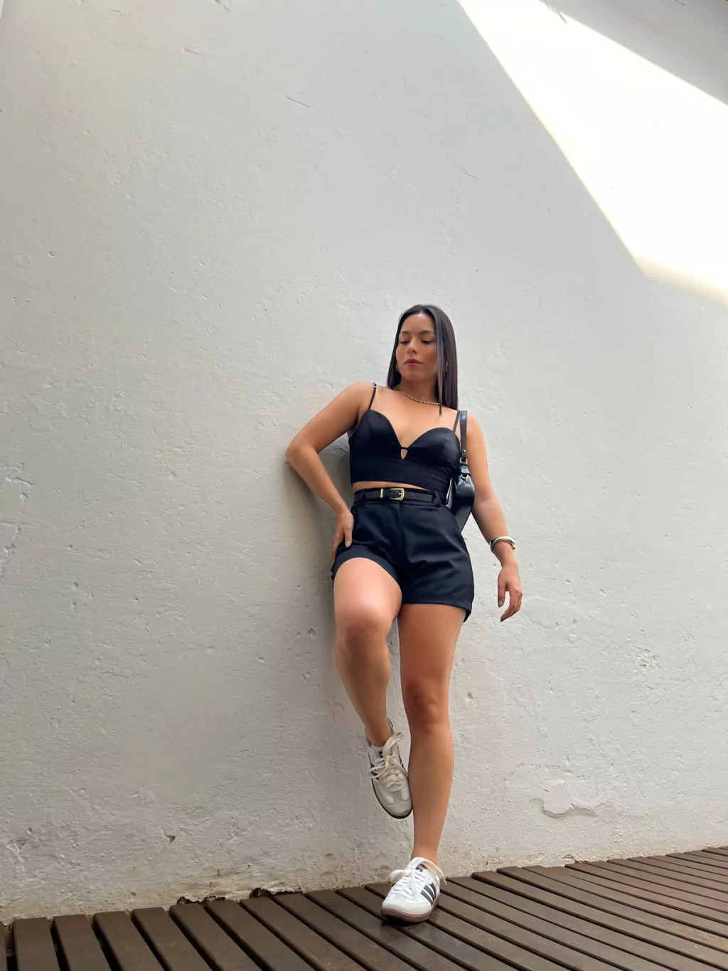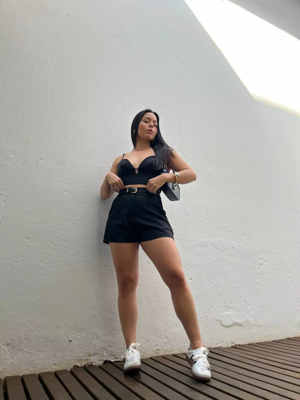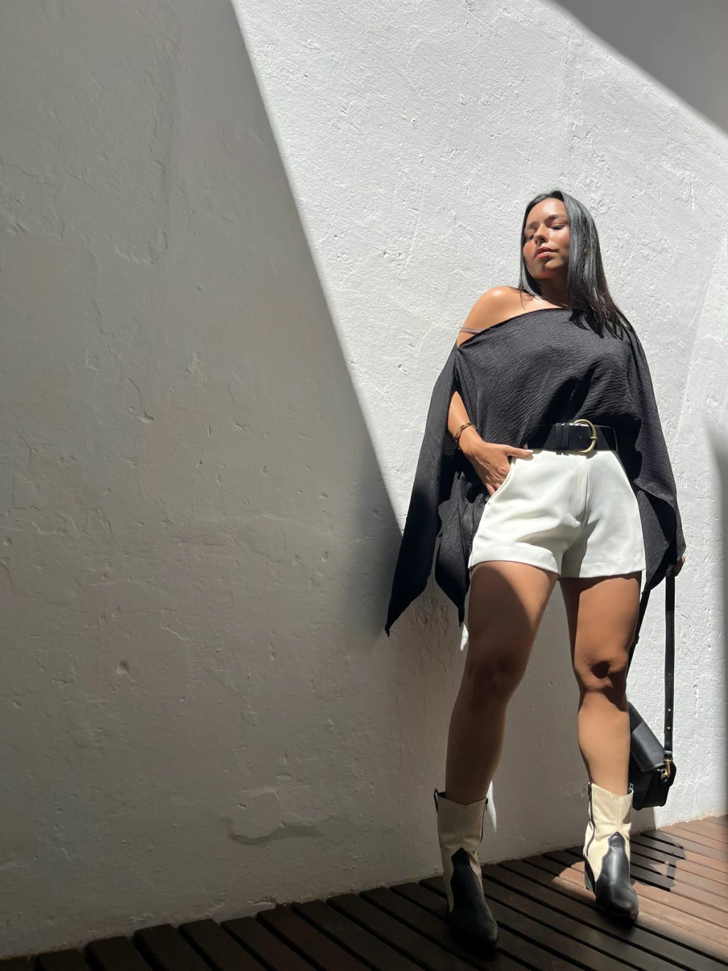 Shorts em crepe de alfaiataria.Possui modelagem cintura alta com fechamento frontal por um botão e zíper. Possui cós com passantes e bolso faca. Possui forro. Não marca e não fica transparente.