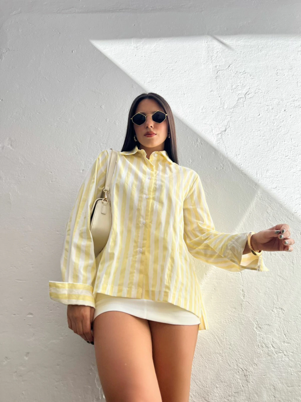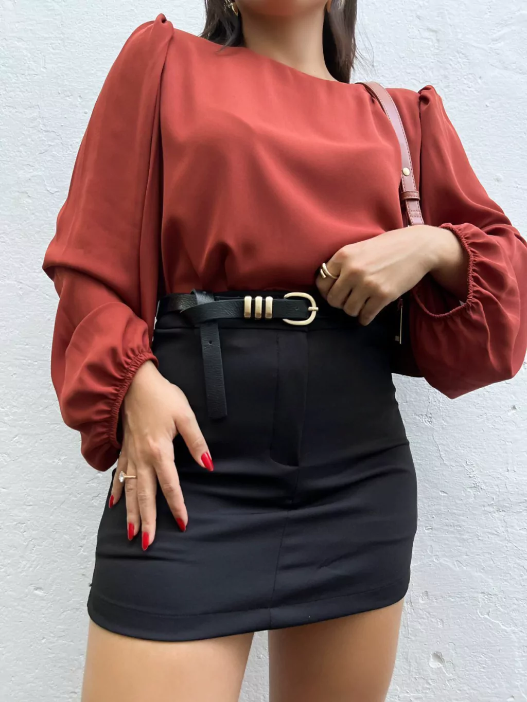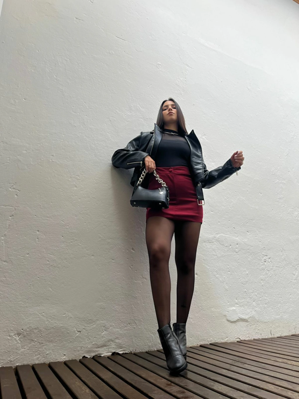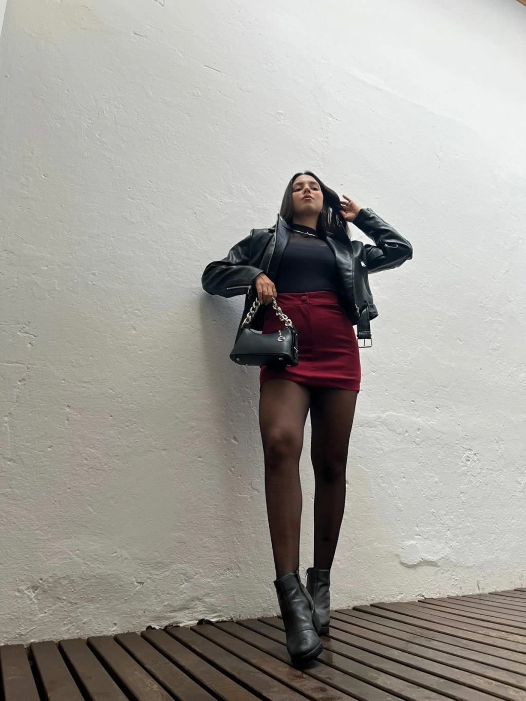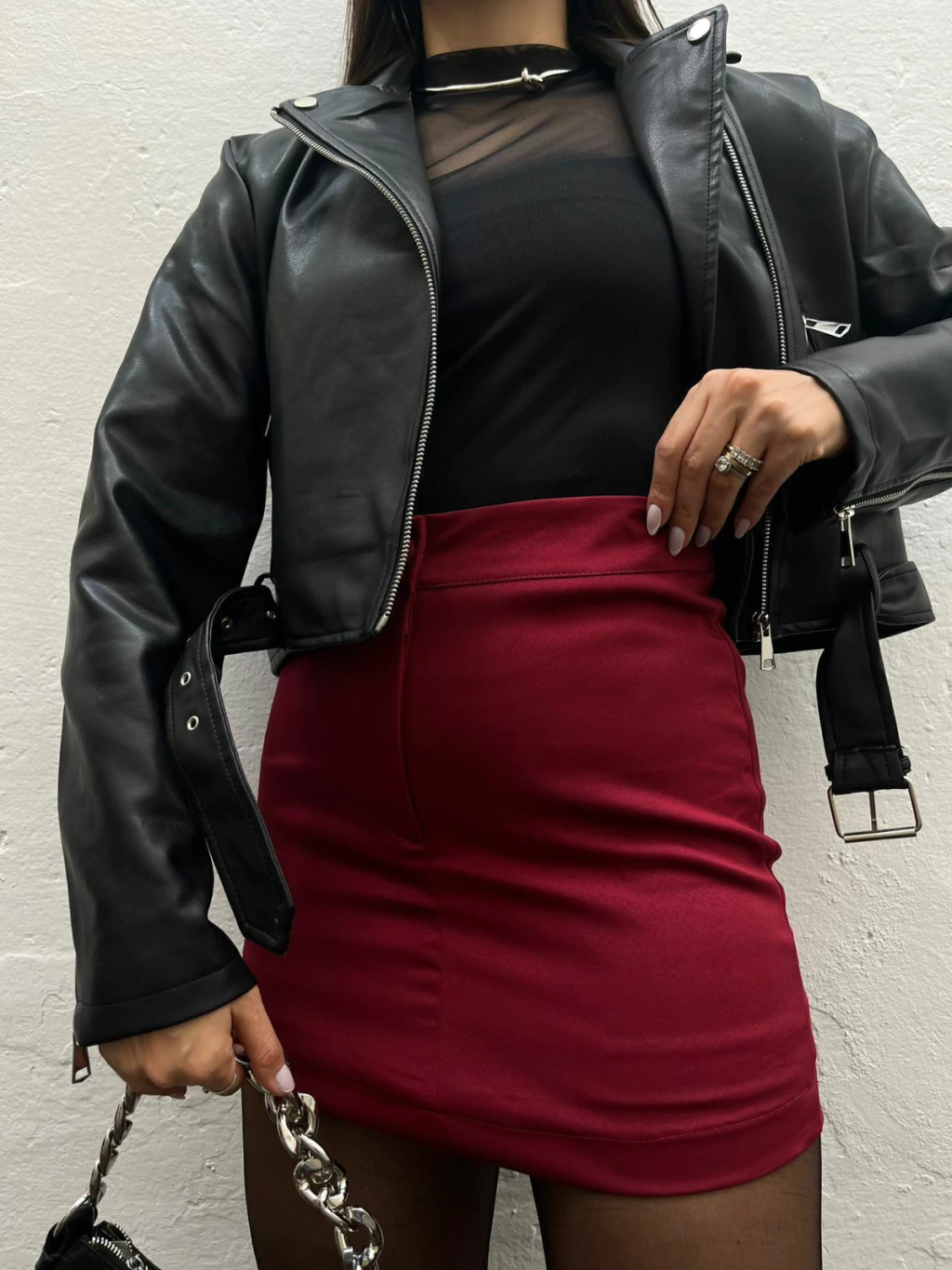 Shorts/saia confeccionado em crepe. Possui fechamento com um botão encapado e zíper. Possui shorts por baixa e saia por cima. Possui bolso faca e passantes. Não marca e não fica transparente.